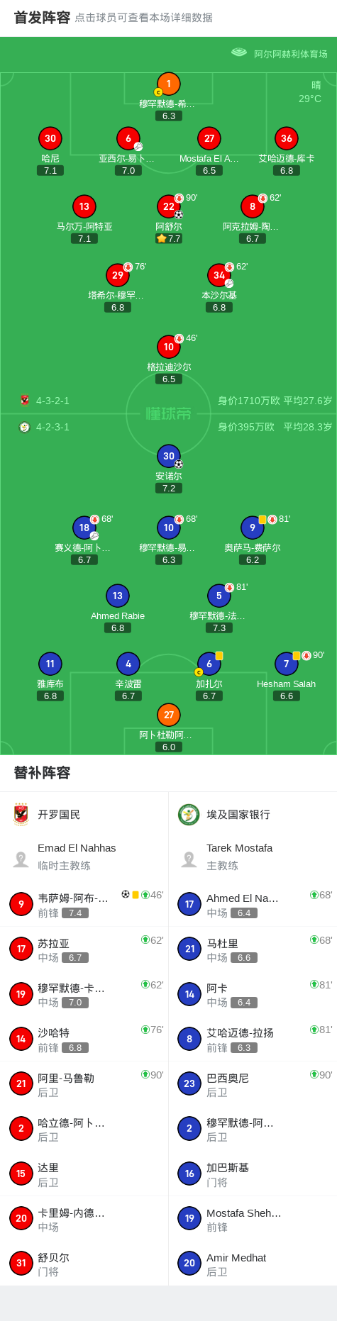 上半场补时第1分钟,埃及国家银行球员赛义德-阿卜杜拉助攻安诺尔打入一球。