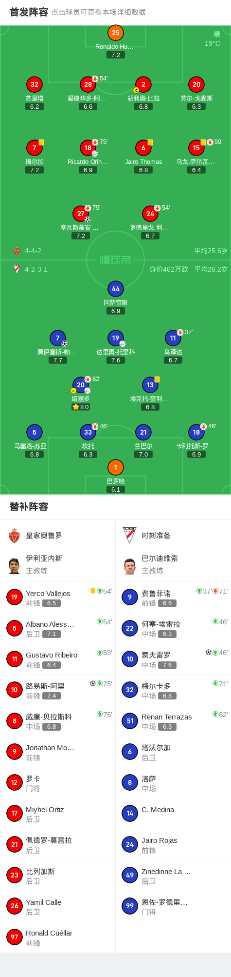 第15分钟,皇家奥鲁罗球员Ricardo Orihuela助攻塞瓦斯蒂安-塞瓦略斯打入一球。