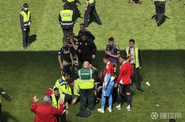 比赛结束后,邓迪联球迷冲入球场,挑衅随队而来的阿伯丁球迷。座椅板本应朝他们的方向飞去,但却击中了阿伯丁球员麦肯齐。