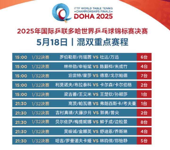 国乒多哈世乒赛今日赛程:15点王楚钦/孙颖莎迎来混双首秀南京伦敦体育场小杨 @懂球帝2025-05-18 11:20北京时间5月18日,多哈世乒赛正在进行当中,今日赛程发布。国乒赛程如下:15:00 王楚钦/孙颖莎vs梁吉善/王艾米15:40 王曼昱vs威尔戈斯18:20 王艺迪vs朱成竹22:10 林诗栋vs皮切福特22:50 石洵瑶vs林依诺00:50(次日)林高远vs阿卜杜拉齐兹 展开更多