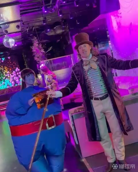 在米娅的生日舞会上,卡拉格穿着一件紫色天鹅绒外套,戴着高顶礼帽,打着一个巨大的领结,同时手持一根手杖,将自己打扮成经典影片《欢乐糖果屋》中的糖果商威利-旺卡,同时还演唱了电影中脍炙人口的歌曲《纯真的幻想(Pure Imagination)》,引得众人欢笑。看得出来,这位46岁的前英格兰球星在女儿的生日舞会上玩得很开心。