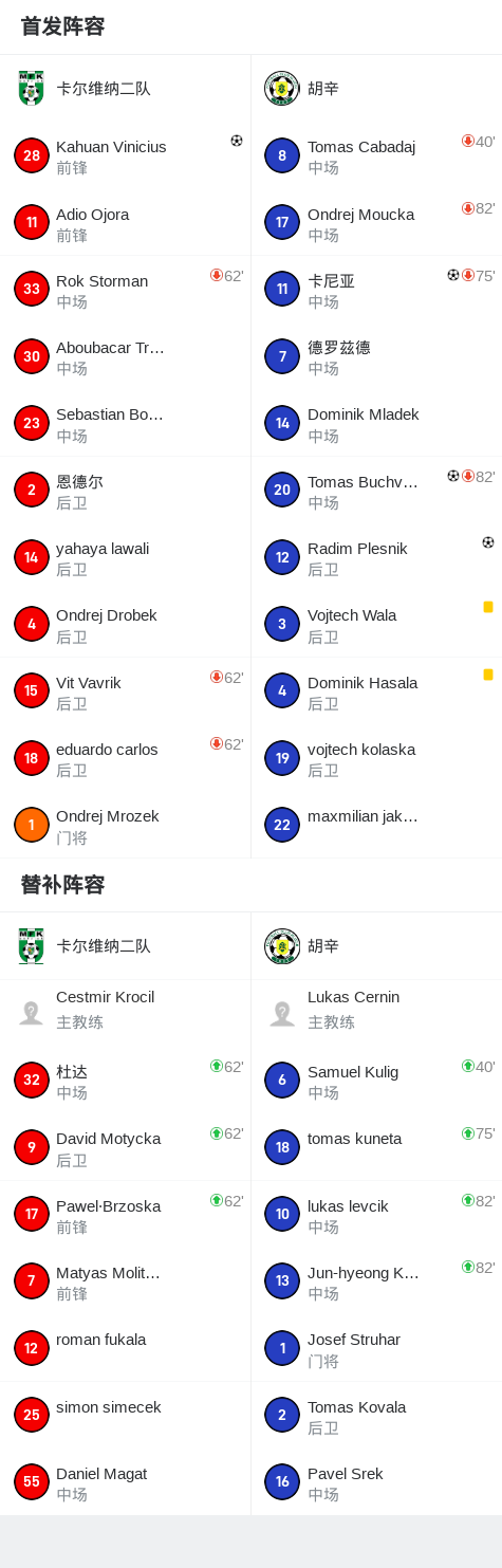 胡辛3-1卡尔维纳二队,Radim Plesnik、卡尼亚破门