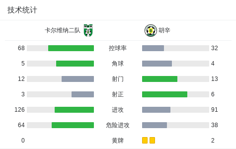 第41分钟,卡尔维纳二队球员Kahuan Vinicius打入一球。