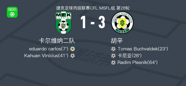 第23分钟,胡辛球员Tomas Buchvaldek打入一球。