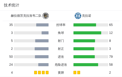 北京时间5月18日,捷克足球丙级联赛CFL B组第28轮,赫拉德茨克拉洛韦二队主场迎战克拉诺。比赛中,克拉诺由Josef Jakab率先取得进球,随后赫拉德茨克拉洛韦二队的petr chudy扳平比分。克拉诺的马丁-诺瓦克再度帮助球队取得领先,但赫拉德茨克拉洛韦二队的David Jurcenko在最后阶段将比分追平。最终,双方以2-2战平。