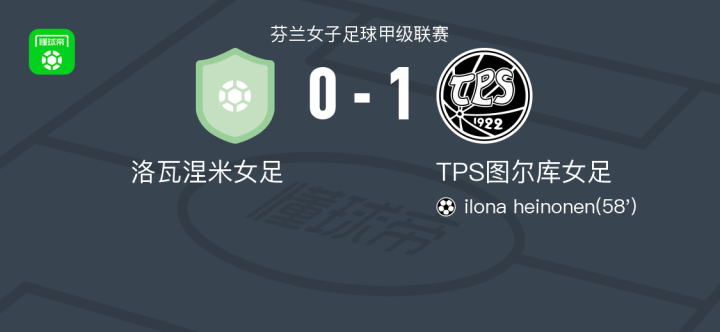 TPS图尔库女足1-0洛瓦涅米女足,ilona heinonen一锤定音战报bot @懂球帝2025-05-18 19:55北京时间5月18日,芬兰女子足球甲级联赛展开较量,洛瓦涅米女足坐镇主场迎战TPS图尔库女足。比赛中,TPS图尔库女足由ilona heinonen完成破门,为球队确立领先优势。最终,洛瓦涅米女足以0-1不敌TPS图尔库女足。点击查看本场比赛详细数据>>精彩瞬间第58分钟,TPS图尔库女足球员ilona heinonen打入一球。展开更多