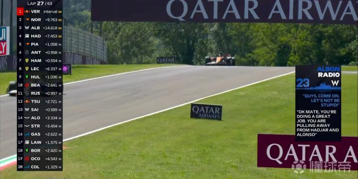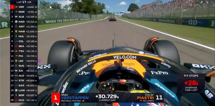 第29圈:诺里斯进站执行一停,出战落在阿尔本身前;