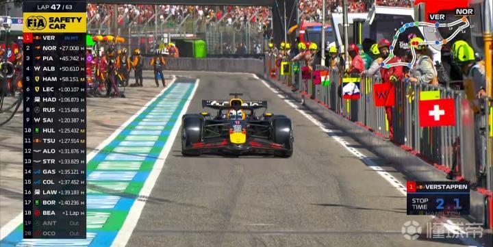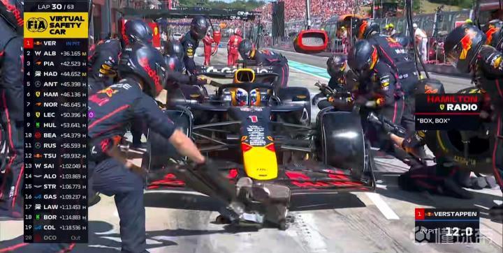 赚大了!维斯塔潘在VSC下进站执行一停,直接省下10秒的进站时间!