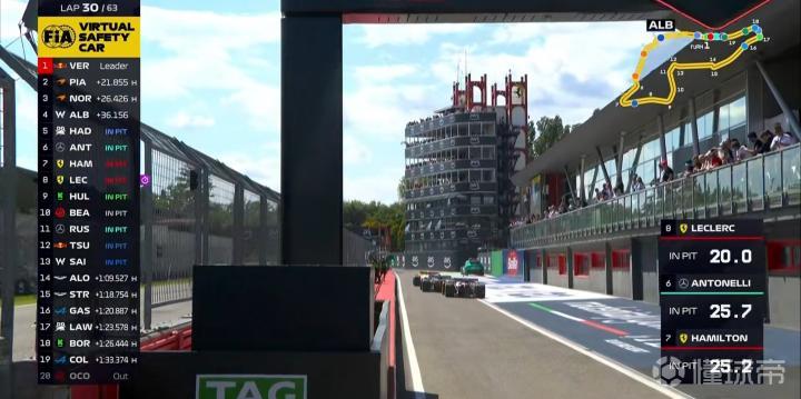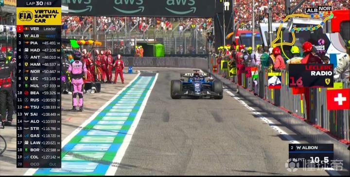第30圈:勒克莱尔在TR中表示“Unbelievable”,这个虚拟安全车的时机对于早进站的车手来说吃了大亏!