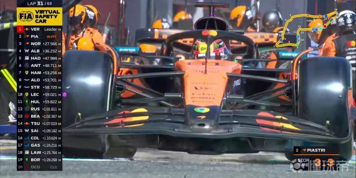 第31圈:皮亚斯特里在虚拟安全车结束前进站,落在哈贾尔身前;