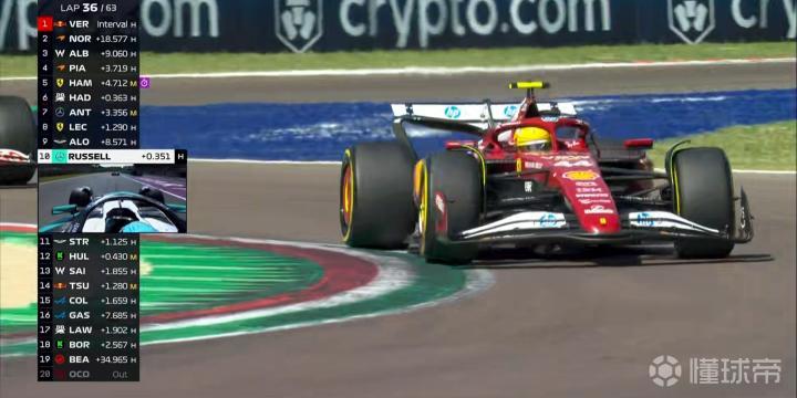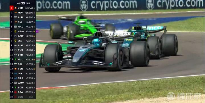 第35圈:拉塞尔超越斯特罗尔,上升到第10,下一个目标为使用旧硬胎的阿隆索;