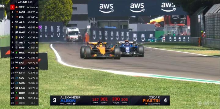 第40圈:皮亚斯特里超越阿尔本,回到领奖台的位置;
