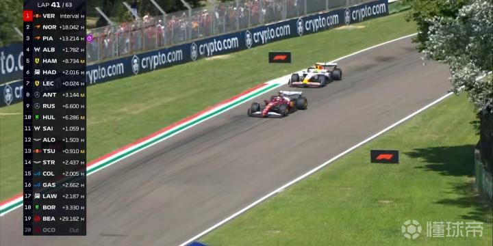 第41圈:勒克莱尔超越哈贾尔上到第6,两台法拉利又跑到了一起;