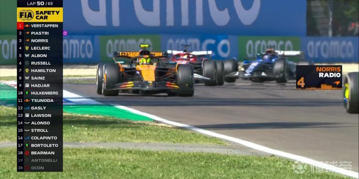 第50圈:诺里斯表示他看到皮亚斯特里的轮胎状况很不好,同时他也表示自己并不是要求车队必须换位置,他将决定权交给车队!