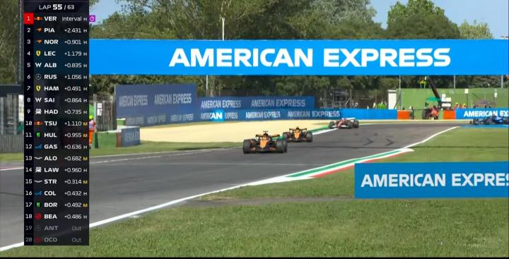第55圈:皮亚斯特里落后维斯塔潘达到2.4秒,迈凯伦目前没有任何车队指令?