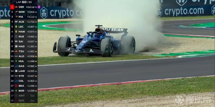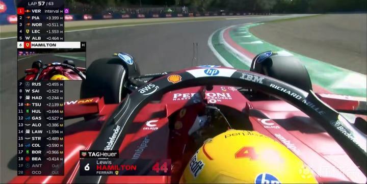 第60圈:勒克莱尔强硬防守阿尔本,并将后者推出了赛道,汉密尔顿也顺势超越!