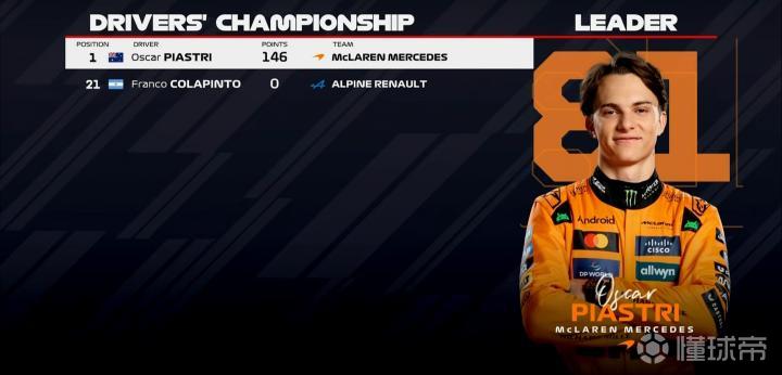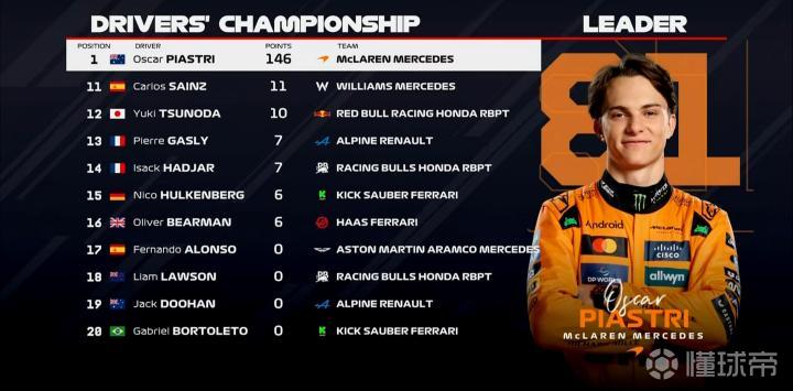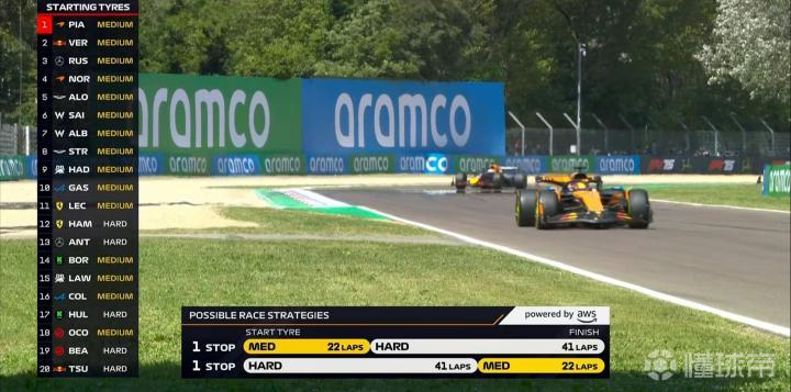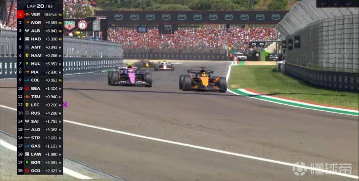 第20圈:皮亚斯特里超越科拉平托上升到第8,他与维斯塔潘的差距在32秒;