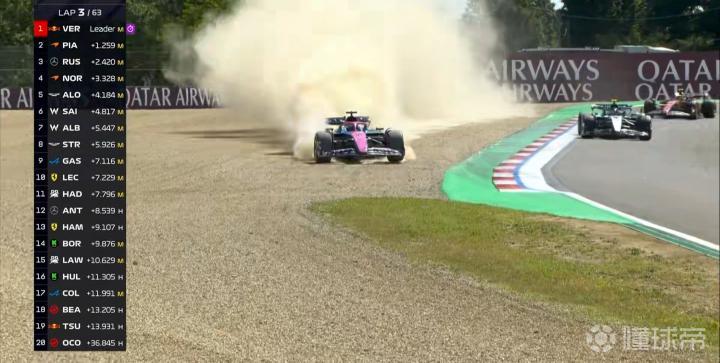 第3圈:加斯利在9号弯与勒克莱尔的缠斗时冲出赛道,损失5个位置掉到第14;