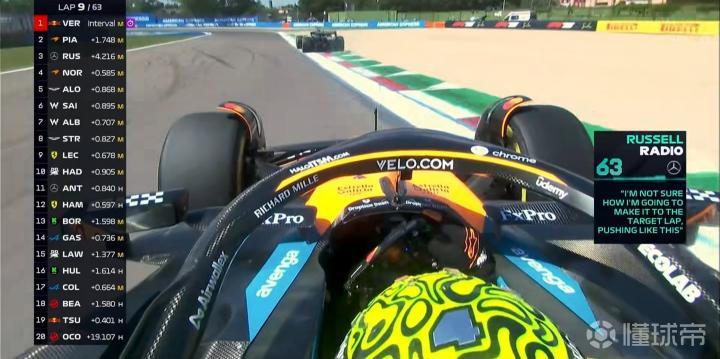 第9圈:拉塞尔表示以目前的状况是没法坚持到目标圈数,诺里斯在对他持续发起着进攻;