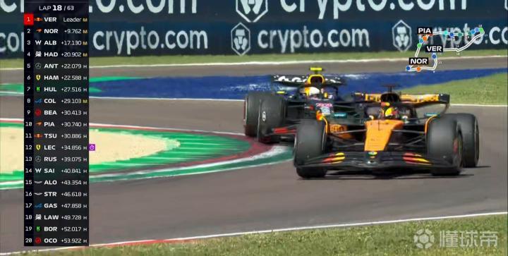第18圈:皮亚斯特里在2号弯晚刹车超越角田,避免被后者阻挡浪费过多时间;