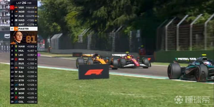 第26圈:皮亚斯特里追到汉密尔顿身后并完成超越,下一个目标是安东内利;