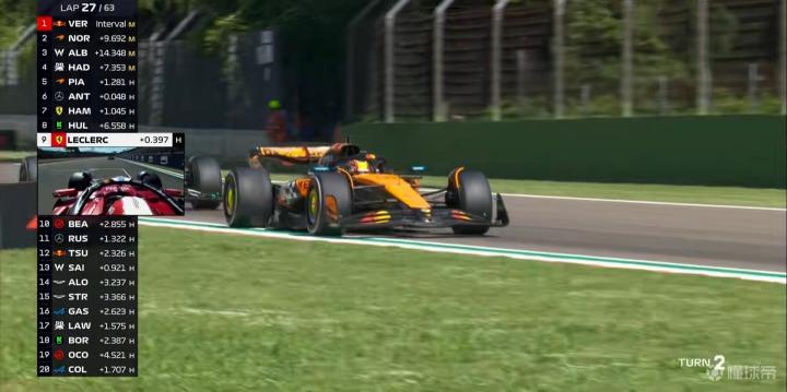 第27圈:皮亚斯特里超越安东内利上到第5,勒克莱尔也在这几圈中上升到第8;