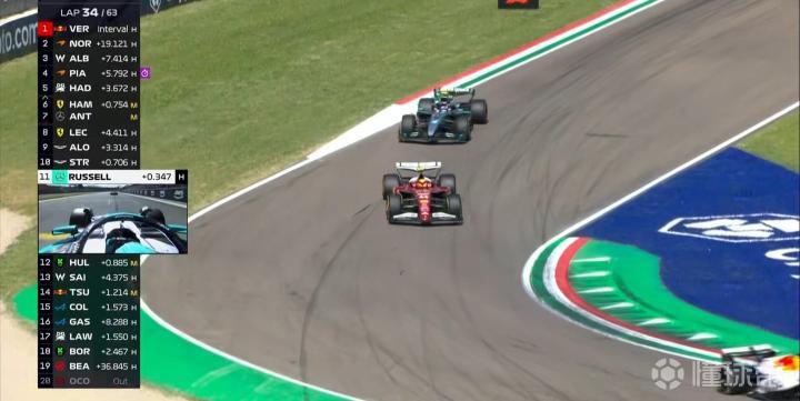 第34圈:汉密尔顿终于完成对安东内利的超越,上升到第6;