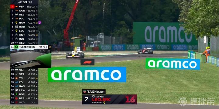 第38圈:勒克莱尔超越安东内利上到第7,阿隆索即将受到霍肯伯格的攻击;