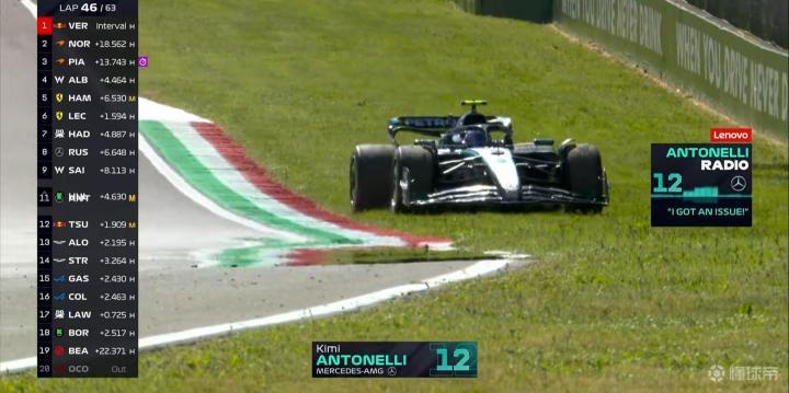 第46圈:安东内利的赛车出现问题后停在了赛道旁,赛会出动实体安全车!!!