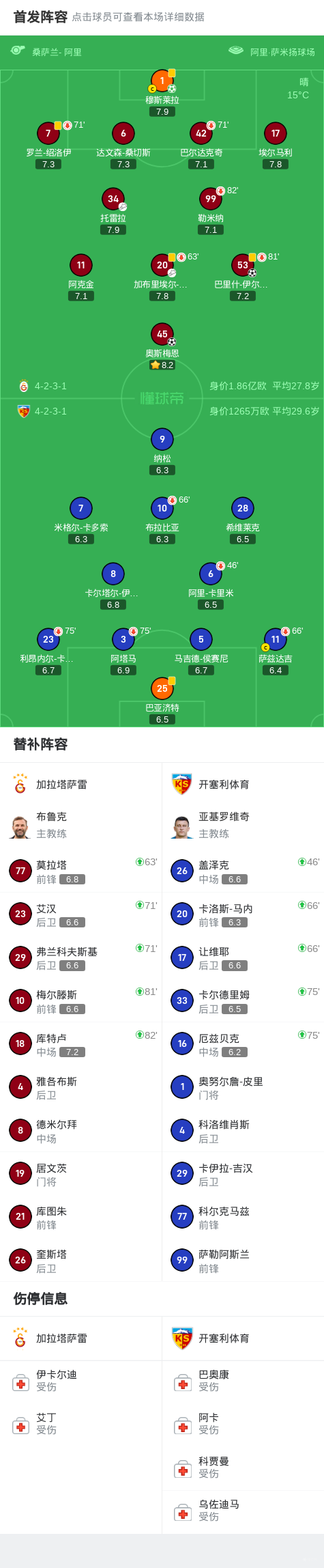 第29分钟,加拉塔萨雷球员托雷拉助攻巴里什-伊尔马兹打入一球。