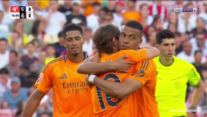 此役客场对阵塞维利亚,首发出战的姆巴佩在比赛第75分钟破门,帮助皇家马德里取得1-0领先。