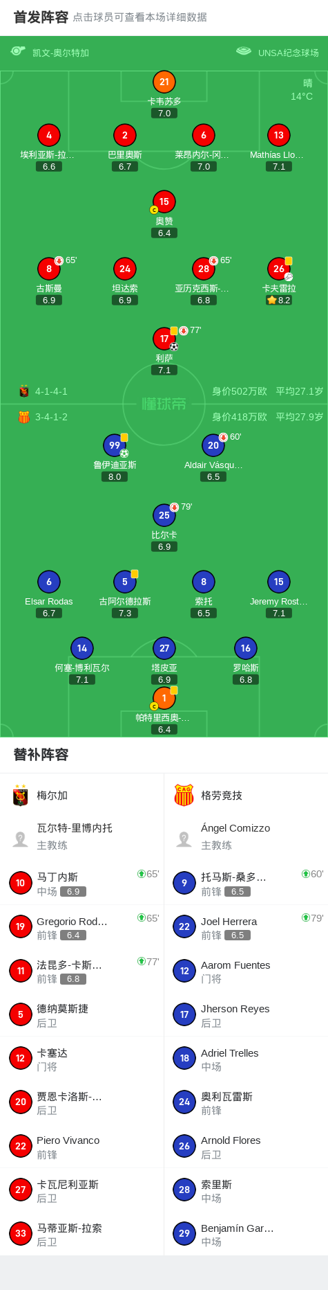 梅尔加1-1格劳竞技,利萨先拔头筹,鲁伊迪亚斯扳平