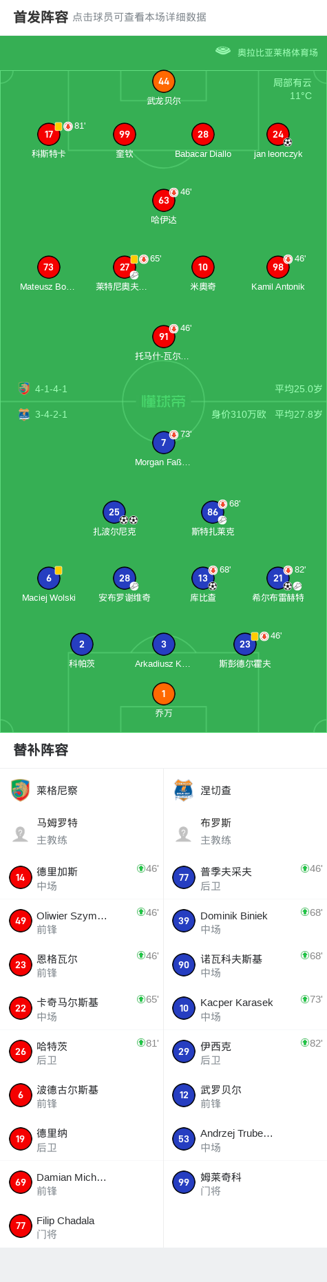 第22分钟,莱格尼察球员莱特尼奥夫斯基助攻jan leonczyk打入一球。