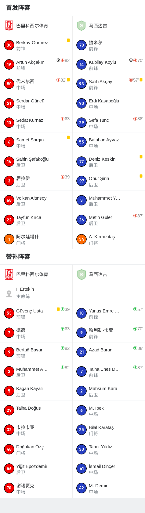 90分钟战报:巴里科西尔体育1-1战平马西达吉,双方进入加时赛