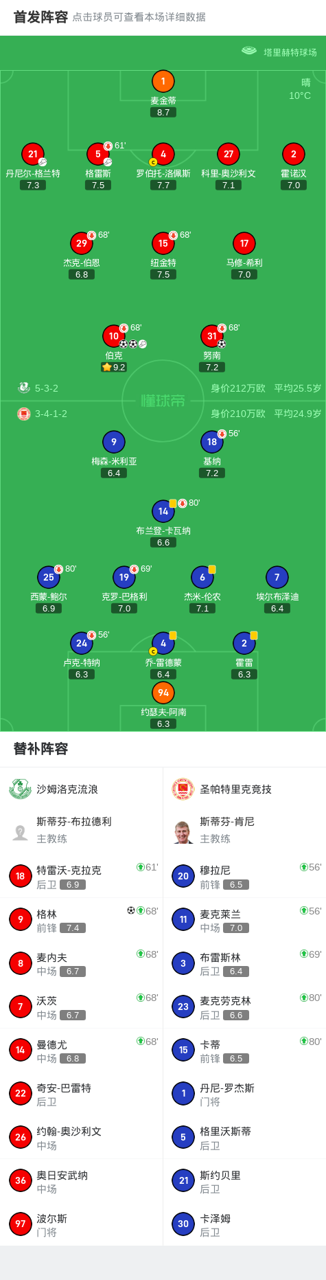 沙姆洛克流浪4-0大胜圣帕特里克竞技,伯克双响,格林建功