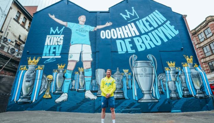 将迎曼城主场告别战,德布劳内赛前参观了自己的壁画