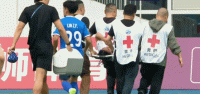 第74分钟,廖锦涛无对抗倒地,随后无法坚持比赛被抬下场