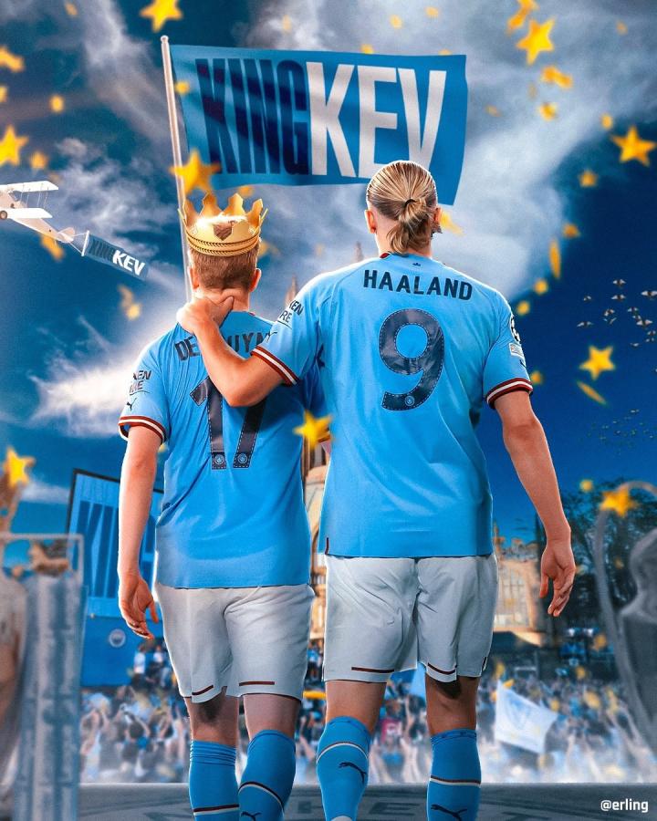 2022年夏天哈兰德加盟曼城并和德布劳内成为了队友,他们也一同在2022/23赛季成功加冕了英超联赛、英格兰足总杯和欧冠的三冠王。