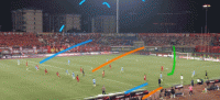第13分钟,何塞-卡里略传向余望头球攻门,皮球偏出球门