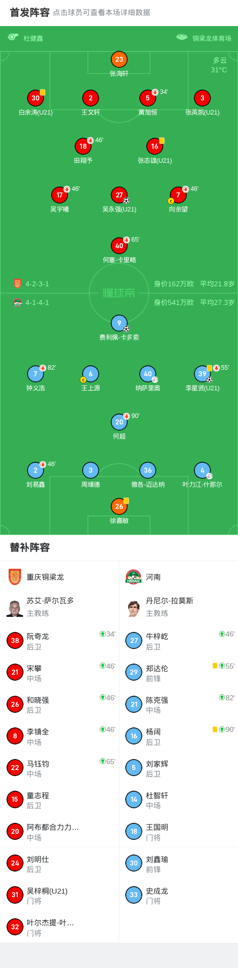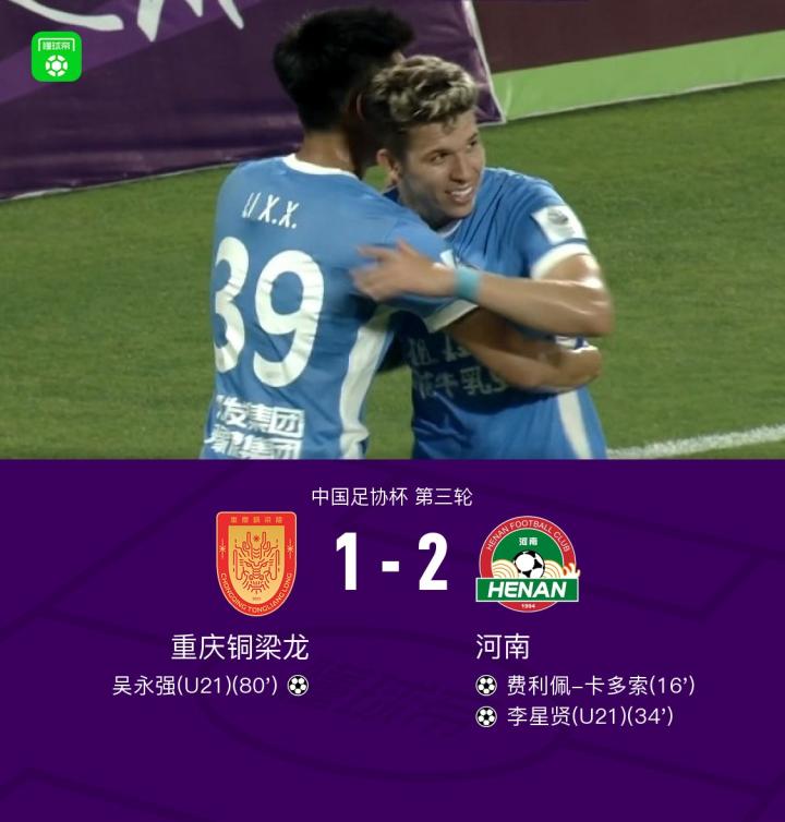 河南2-1重庆铜梁龙晋级,卡多索、吴永强建功,李星贤制胜