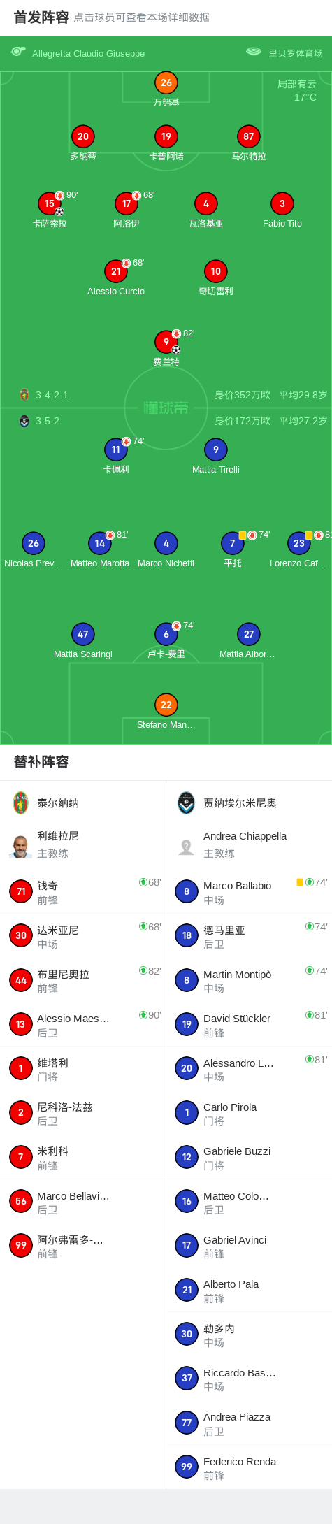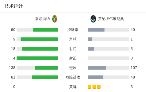 泰尔纳纳2-0贾纳埃尔米尼奥,费兰特建功,卡萨索拉锁定胜局