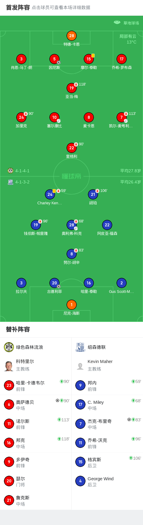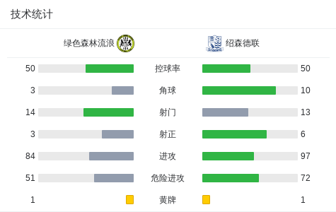 第95分钟,绿色森林流浪球员塞尔康比助攻奥萨德贝打入一球。