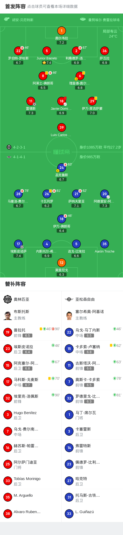 第67分钟,奥林匹亚球队Javier Dominguez吃到红牌。