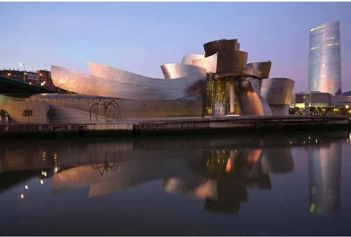 1997年落成的古根海姆美术馆,是解构主义建筑的代表作。成为了毕尔巴鄂的城市LOGO。许多人来到巴斯克旅行,打卡的地方就是这座后工业风的美术馆。