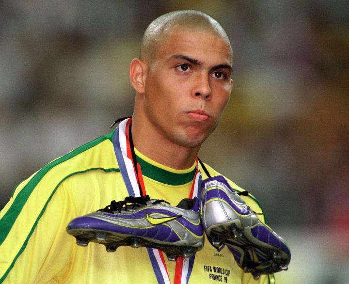 罗纳尔多目光呆滞,那双赞助商特意打造的水星球鞋赛后挂在他的脖子上,一双足球鞋第一次如此引人瞩目。