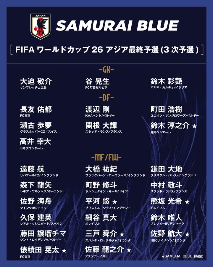 北京时间5月23日,日本足协公布了6月份世预赛的大名单。在国内联赛考察数月的日本主帅森保一也选择让多名J联赛球员首次入选国家队。