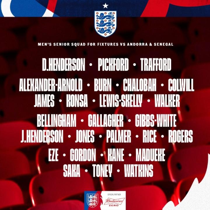 北京时间5月23日,英格兰官方公布了最新一期大名单,凯恩领衔,贝林厄姆,阿诺德、赖斯、萨卡在列,福登未入选。
