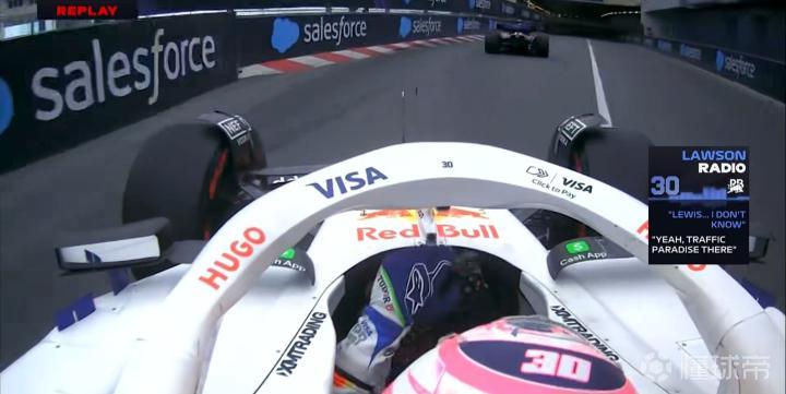 劳森在大酒店弯遭遇堵车的状况,他在TR中表示不知道汉密尔顿在干什么...