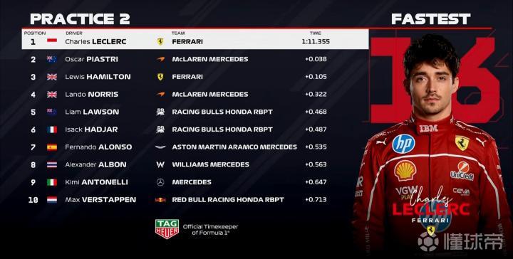 F1摩纳哥站二练:勒克莱尔全场最快,劳森第5,维斯塔潘第10