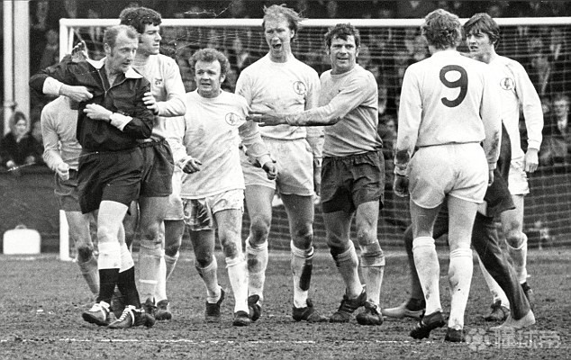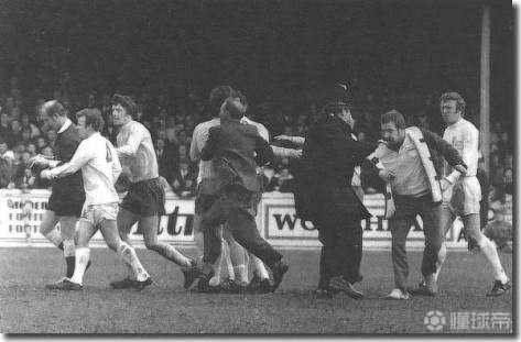 这时,全体利兹球员将裁判围了起来,大约20名观众冲入场内,警察拼命去组织他们。球员们将主裁判保护了起来,但另一边的边裁科林-卡特里奇却被一个罐子击中,不得不接受利兹队医莱斯-科克尔的治疗。